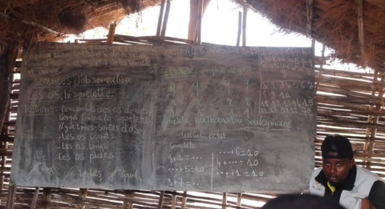 Face à l’absence d’infrastructures, les habitants ont dû s’organiser. Un abri de fortune a été érigé pour servir de salle de classe, mais celui-ci reste largement insuffisant pour accueillir tous les élèves.