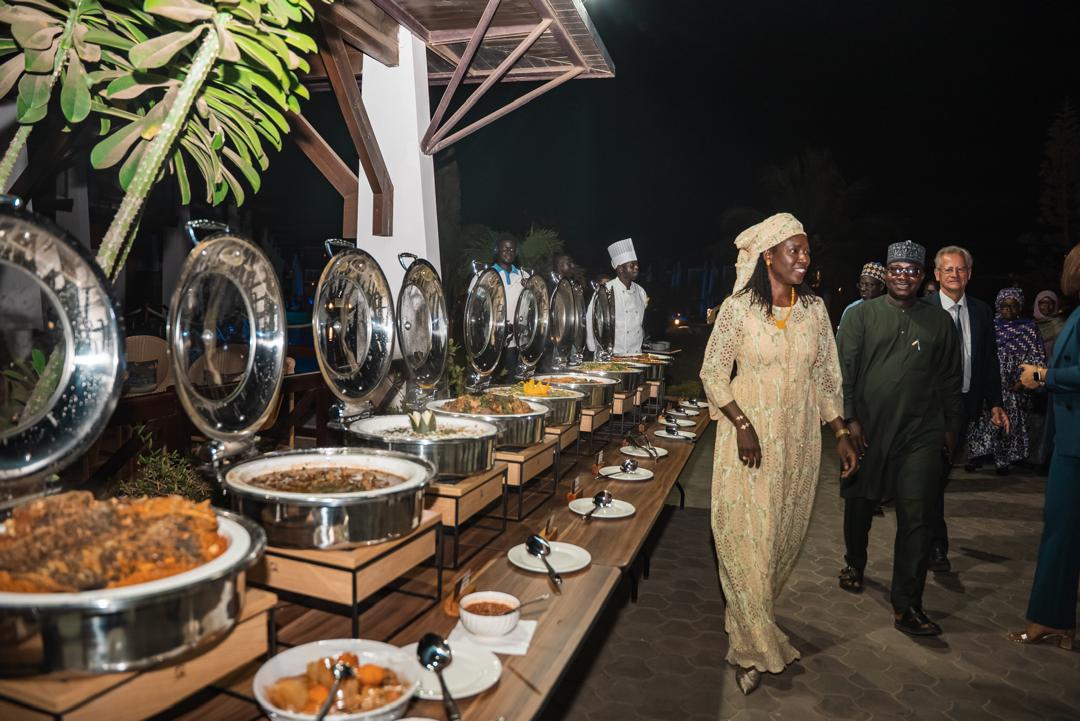En conclusion, l'Ambassadeur a formulé le vœu ardent que cette relation fraternelle unique continue de se fortifier et de s'épanouir, dans l'intérêt mutuel et le bien-être durable des populations sénégalaise et gambienne. La célébration s'est magnifiquement achevée autour d'un somptueux banquet, relevé par deux plats sénégalais, véritable invitation à un voyage culinaire au cœur de notre gastronomie. Les convives ont ainsi eu le privilège de savourer le renommé thiéboudienne, chef-d'œuvre inscrit au patrimoine immatériel de l’UNESCO, ainsi que le délicieux thiéré mboum, un couscous préparé avec le savoir-faire ancestral et la générosité emblématique de notre tradition. Ce fut un moment d'authentique partage culturel et de communion profonde, venant sceller en beauté cette inoubliable célébration.