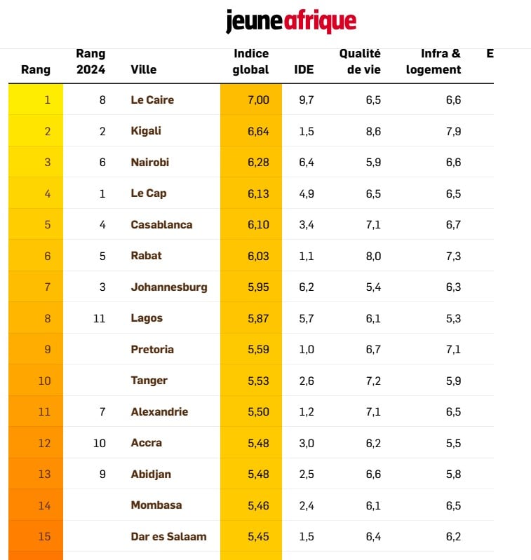 Classement des villes africaines les plus attractives en 2025 : La dégringolade de Dakar