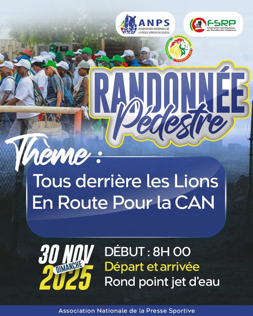 L’Association nationale de la Presse Sportive du Sénégal (ANPS), en partenariat avec la Fédération Sénégalaise de Randonnée Pédestre (FSRP), organise ce dimanche 30 novembre 2025, à Dakar, une grande randonnée citoyenne intitulée «Tous derrière les Lions en perspective de la CAN».