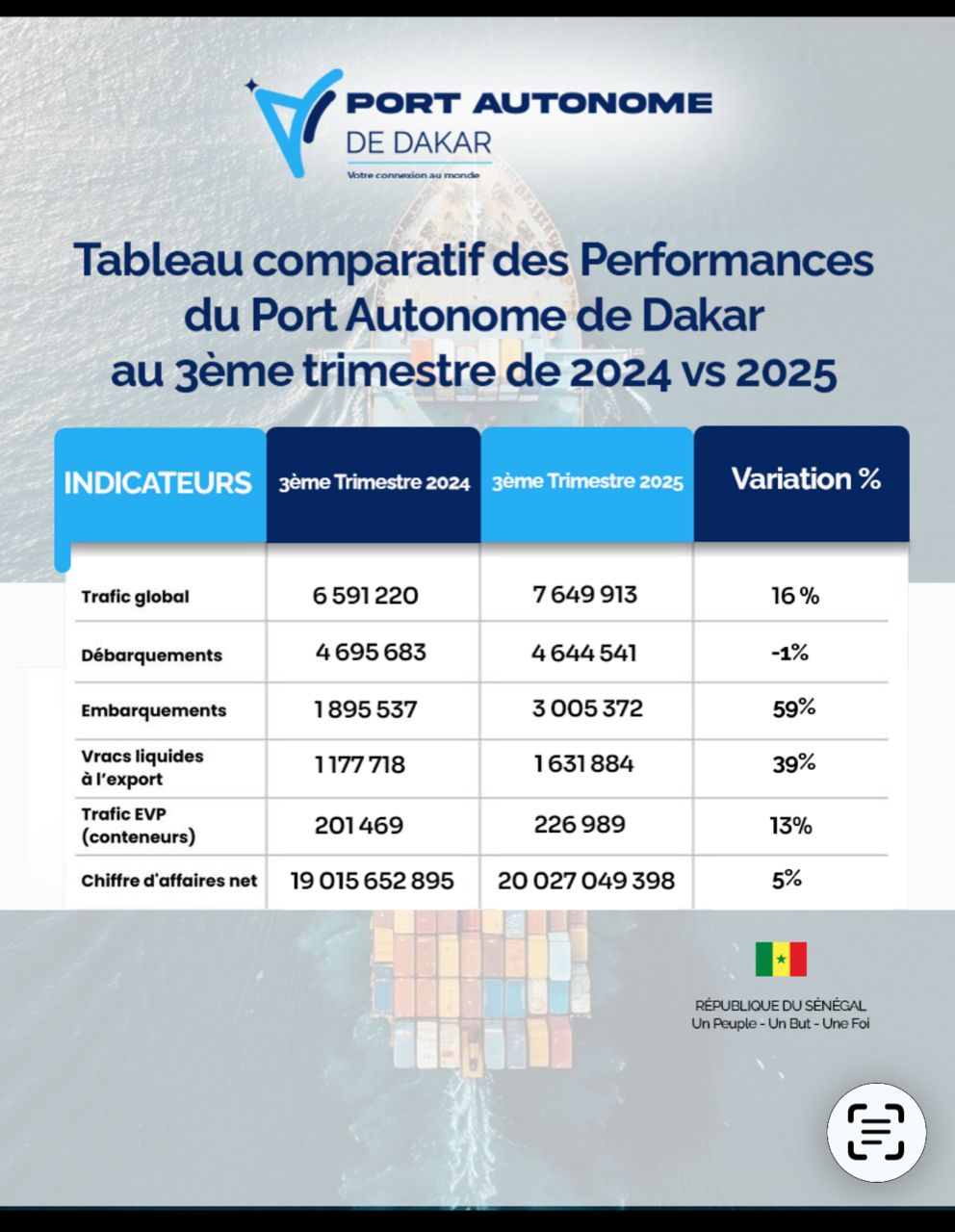 Le Port Autonome de Dakar (PAD) affiche des résultats spectaculaires au troisième trimestre (T3) 2025, marquant une nette amélioration de ses performances par rapport à la même période en 2024.