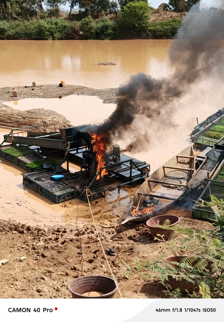 Lutte contre l’orpaillage illégal : Trois dragues et une pirogue détruites à Saeinsoutou