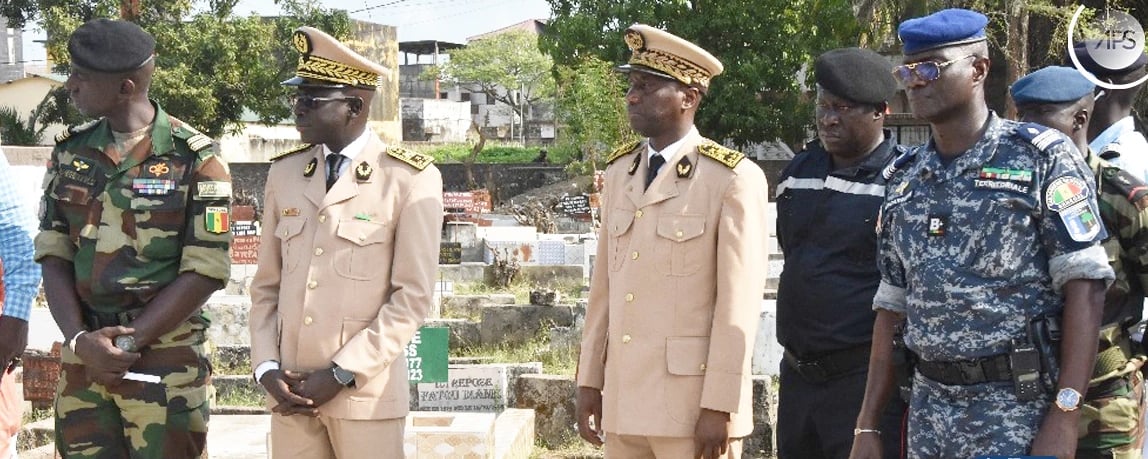 Le Gouverneur de la région Mor Talla Tine, accompagné du Commandant de la zone militaire n°5 Sud, le Colonel Cheikh Gueye, du Commandant de la légion Sud de la gendarmerie, le Colonel Papa Saboury Ndiaye, des anciens combattants, des autorités administratives et locales, ainsi que des chefs de service, tous ensemble se sont rendus au monument aux morts avant de poursuivre leur périple au niveaux de quelques cimetières de la commune de Ziguinchor.