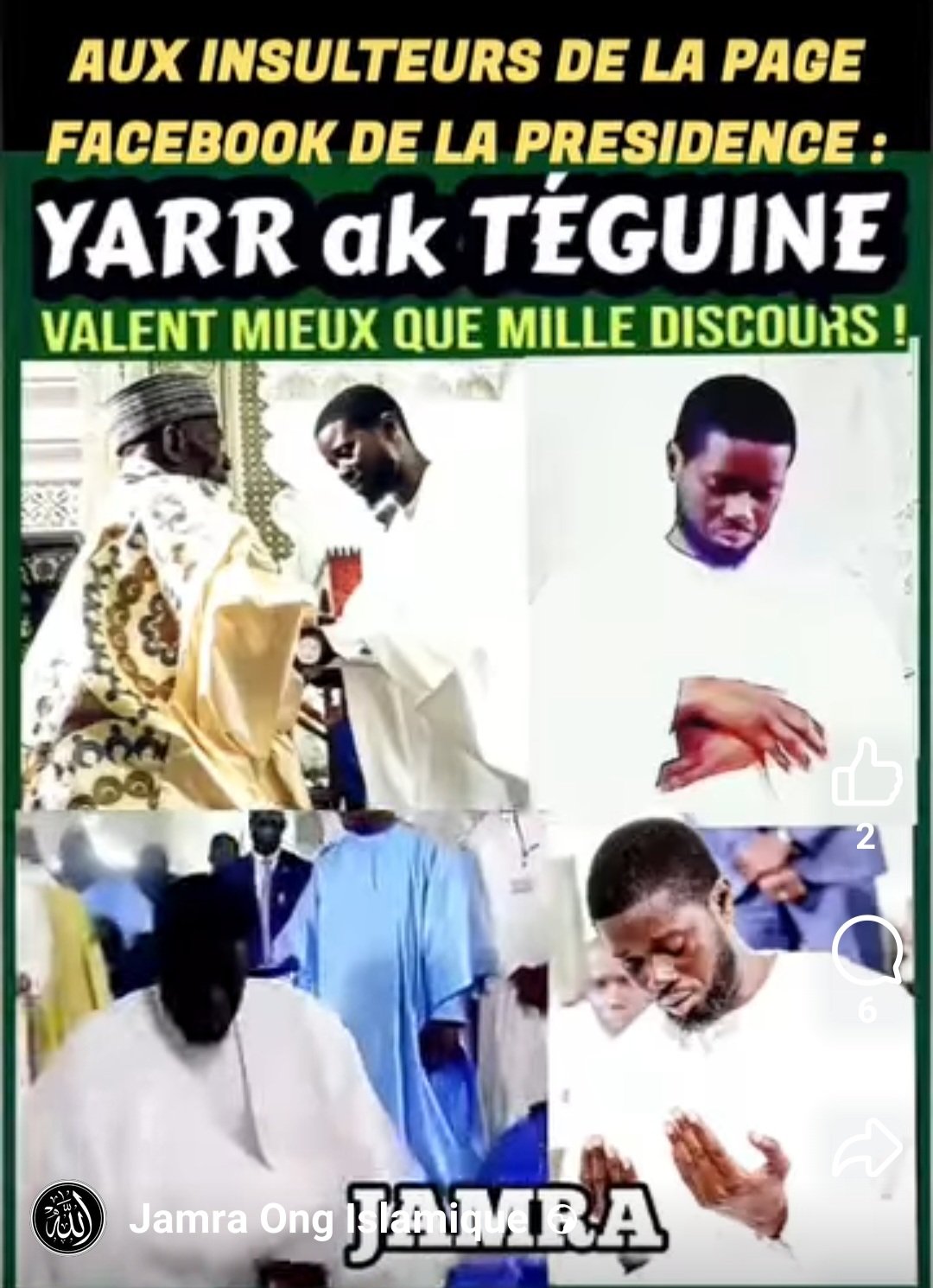Le vice-président de JAMRA de lancer un appel solennel : "Alors, bayiléén saaga yi, té respecter suñuy institutions, qui n'appartiennent à personne !"