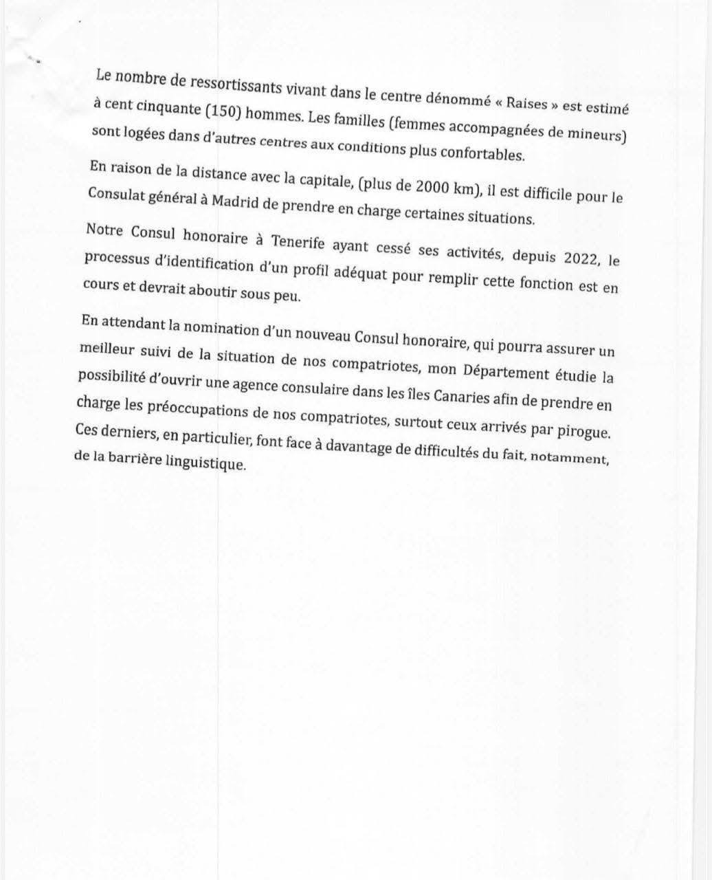 Le ministère des Affaires étrangères reconnaît les difficultés liées à l’éloignement du consulat général de Madrid, situé à 2000 km de Tenerife. Le consul honoraire ayant cessé ses fonctions en 2022, un nouveau profil est en cours d’identification. Le ministère étudie également la possibilité d’ouvrir une agence consulaire dans les îles Canaries pour mieux répondre aux besoins des compatriotes.