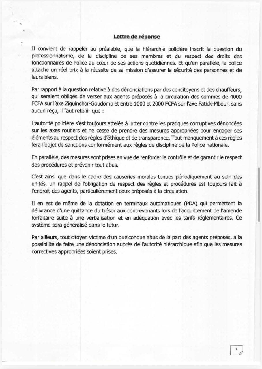 Corruption routière sur les axes Ziguinchor-Goudomp et Mbour-Fatick